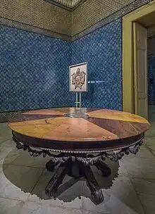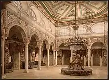 Toutes les peintures exécutées sur les plafonds sont également de facture italienne, de même que les meubles, les tentures et accessoires d'ameublement, comme le montrent des photographies et des cartes postales du début du XXe siècle[2]. Cette prédilection pour le style européen, très nette à Ksar Saïd, ne s'est pas traduite par un abandon de la tradition locale. Dans diverses pièces du palais, des références importantes au répertoire architectural et décoratif tunisien existent.