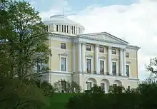 Il a été construit entre 1782 et 1786 par l'architecte Charles Cameron dans le style palladien, pour Catherine II qui en fit cadeau à son seul enfant, le futur Paul Ier. Des travaux d'agrandissement se sont poursuivis ensuite de la fin des années 1780 au début des années 1790 par l'architecte attitré de Paul, Vincenzo Brenna, qui suréleva les galeries et les pavillons latéraux, et les prolongea par de nouvelles ailes. La décoration intérieure fut conçue par Marie Feodorovna, née princesse Sophie-Dorothée de Wurtemberg, épouse de Paul, qui était une femme au tempérament artiste et qui survécut à son mari (assassiné en 1801), jusqu'à sa mort en 1828.