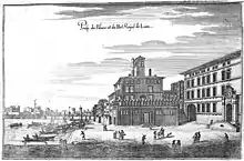 Cependant, le pouvoir royal va peu à peu installer ces différentes administrations une à une dans la ville de Lyon au palais de Roanne qui est la principale propriété de la royauté dans la ville. Au XIVe siècle, le palais de Roanne devient le siège du notaire royal, des sergents royaux, du maître des ports, du prévôt des monnaies, du juge des juifs... En 1376, on y installe des prisons et le tribunal royal commence à y siéger même s'il ne s'y installe définitivement qu'en 1467[2]. Le palais de Roanne, à quelques mètres du quartier canonial, symbole de la puissance seigneuriale de l'archevêque et du chapitre, devient ainsi le siège officiel des juridictions royales.