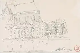Le palais de l'Archevêché de Paris était la demeure de l'archevêque de Paris avant sa destruction lors d'un mouvement révolutionnaire en 1831. Après sa destruction, l'archevêché de Paris eut son siège dans différentes demeures jusqu'à aujourd'hui. En 1859, sous le Second Empire, il y eut un projet de l'architecte Eugène Viollet-le-Duc de construction d'un nouveau palais à proximité de Notre-Dame de Paris[1].