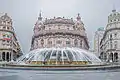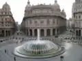 Le Palazzo sur la Piazza De Ferrari dans une carte postale à la fin des années 1930.