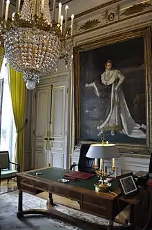 Une partie du mobilier provient du château de Fontainebleau à savoir ; console, secrétaire et pendule. Il s'y trouve un grand tableau de Napoléon en costume de sacre, d'après Jules Lefebvre (1836-1911), l'original se trouvant dans le musée de la Légion d'honneur ; et un portrait en buste du maréchal Étienne Macdonald qui est grand chancelier sous la Restauration[12].