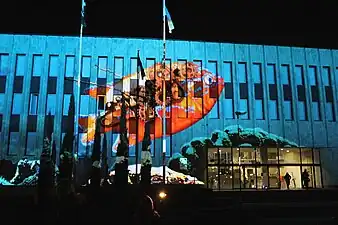 Conçu par les architectes Juris Gertmanis et Valērijs Kadirkovs, la construction du bâtiment s'est achevée en 1982. La décoration extérieure du bâtiment a utilise de la dolomite rose et de l'étain cuivré. Au premier étage du bâtiment se trouve une salle de conférence de 1 200 places, au deuxième étage il y a le balcon de la grande salle, une petite salle, ainsi que d'autres pièces, tandis qu'au troisième étage il y a des bureaux. En 1999-2000, une extension de quatre étages a été construite[2].
