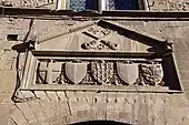 Sous les tasseaux des merlons (type Guelfe) se trouvent quelques armoiries civiques : le Lys de Florence, la croix du peuple et les armoiries angevines, René d'Anjou étant devenu garant de la liberté de la commune.