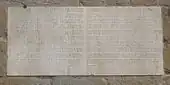 Une autre plaque, située près de l'angle du bâtiment, près de la tour, également peu lisible, est connue par ses transcriptions, qui indique les précautions nécessaires contre les risques d'incendie, prévenant également les cas de malveillance, de « tout degré et condition », à « la stricte discrétion de leurs magistrats ».