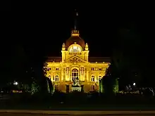 L'ensemble architectural, imposant par son ampleur, affiche un style néo-renaissance germanique de très belle facture (statuaire, bossages, loggia et fronton).