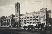Le bâtiment est construit dans un style d'architecture de la Renaissance tardive. La base de l'édifice consiste en des corridors de cinq étages encerclant deux cours, formant deux carrés accolés d'une superficie totale de 6 930 m2. L'entrée principale est surmontée par la tour centrale, s'élevant sur onze étages. La façade extérieure consiste en une armature en acier et de béton, le tout couvert d'une coloration rouge et blanche[1],[2].