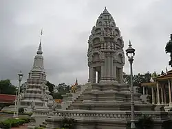 Le palais royal de Cambodge est un bon exemple d'architecture khmère avec son mur défensif (Kampaeng), salle du trône (Preah Tineang), temple du Bouddha d’Émeraude (Wat Preah Keo Morakot), stupas (chedei), des flèches imposantes (prang prasat) et des peintures murales. Le palais royal de Phnom Penh couvre une superficie de 174 870 mètres carrés (402 × 435 m).