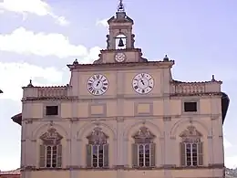La façade qui donne sur la Piazza Matteotti, de style néoclassique, caractérisée par une double horloge des heures et minutes et le quadrant de la rose des vents, a été achevée par Nicola Barbioni en 1687.
