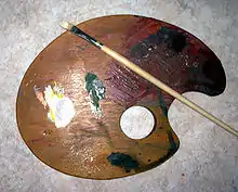 La palette est un outil de peinture et de décoration, servant à disposer les pâtes colorées avant leur utilisation. Par synecdoque palette s'applique à toute sorte de godets et aux couleurs qu'utilise l'artiste-peintre.