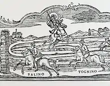 - (it) Le Palio en bandes dessinées - extrait de Histoire du piémont en bande dessinée,édition La Stampa (dessins de Nives Manara,textes de Franco Ressa)