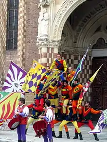 En 1977 est né le Paliotto, une manifestation qui se déroule le jeudi soir précédant la course du Palio. Ce tournoi met en compétition les groupes des manieurs d’étendards des quartiers, bourgs et communes participant au palio. Les sbandieratori ou manieurs d’étendards du Moyen Âge et de la Renaissance étaient des militaires qui pendant la bataille avec leurs lancers de drapeaux et figures soutenaient le moral et donnaient des ordres aux troupes. Par la suite, cette fonction a évolué et elle s’est transformée en acte religieux : Le drapeau est manié symboliquement au nom de la corporation en honneur de Dieu, de la Reine et de la Patrie[2]. Le prix attribué lors de cette compétition est un drapeau plus petit mais semblable à celui qui est attribué lors de la course du Palio. L’initiative a été mise en œuvre pour mieux valoriser cet art original, connu et pratiqué dans beaucoup de contrées nationales et qui atteignit son apogée dans les villes des palios. En 1998, à cette manifestation a été associé aussi un prix spécial pour le meilleur groupe de musici (musiciens).