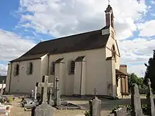 - Une petite église fut édifiée au Port vers le VIe siècle. Elle fonctionna jusqu’au XIe siècle. Un cimetière y était accolé. Les habitants y ensevelirent leurs défunts jusqu'au XVIe siècle. Ensuite, une église fut construite, à l’emplacement actuel. Les dernières indications concernant sa construction parlent de l'année 1730, mais vraisemblablement, elle existait bien avant. Les archives départementales font état de l'existence d'un prieuré en 1006 desservant l'église dont il dépendait. Placée sous le vocable de saint Pierre aux liens, elle possède en son sein un reliquaire de saint Antide que l’on peut dater vers l'année 1300. Entourée du cimetière, notre église domine la commune comme pour la protéger. Dans la sacristie, se trouve une piscine creusée dans le mur. Celle-ci servait aux baptêmes. Dans le mur gauche extérieur on peut voir la sortie de la gouttière. En 1780, d'importants travaux furent effectués : toiture, plafond, contreforts, fenêtres. Dans la nuit du 23 au , la foudre tomba sur le clocher de l'église. Cela provoqua un incendie qui ravagea l'église dont il ne resta que les murs (cf. photo). Sa reconstruction fut entreprise en 1908 et le eut lieu la bénédiction du nouvel édifice avec la mise en place de la cloche. En 1994, la municipalité procéda à la réfection totale de la toiture et des peintures intérieures. Fin 2001, début 2002, ce sont des travaux de ravalement qui ont été réalisés[20]. Brochure de présentation de l'église Saint-Pierre-aux-Liens consultable ici.