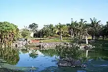 - Madagascar. Cette grande section comprend un large étang avec des mangroves et Typhonodorum lindleyanum. Un grand groupe de Bismarckia nobilis domine les autres. Les palmiers remarquables sont le grand groupe de Ravenea xerophila cultivé dans une rocaille et trois Tahina spectabilis. Il existe différentes espèces de Ravenea, Beccariophoenix et Dypsis. Un baobab adulte semé en 1996 (Adansonia za) pousse au bord du lac, et d'autres arbres endémiques ont été plantés dans la région, comme l'espèce Delonix.