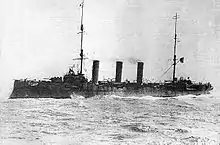 Le croiseur navigue en mer Noire pour la défense des côtes et participe au blocus de la Turquie, alliée de l’Empire allemand.