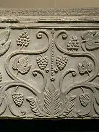 Les pampres sont un motif ornemental (en sculpture, peinture, gravure) représentant une branche de vigne avec ses feuilles et ses grappes.
