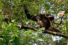 Le chimpanzé passe du temps à la fois dans les arbres et sur le sol, mais dort généralement dans un arbre, où il construit un nid pour la nuit. Ils habitaient autrefois la majeure partie de cette région, mais leur habitat a été considérablement réduit ces dernières années.