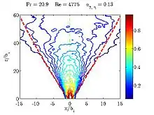 Pour des faibles valeurs de , l'effet de la quantité de mouvement est prépondérant par rapport à celui de flottabilité, tandis que pour des fortes valeurs de , l'effet de flottabilité domine.