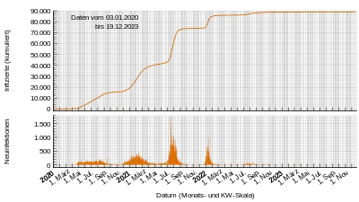 En décembre, il y avait 27 nouveaux cas, portant le nombre de cas total à 88 900 dont 1 968 décès[44].