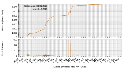En décembre, il y avait 425 nouveaux cas et trois décès, portant le nombre de cas à 2 113 dont 104 décès[22].