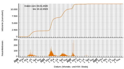 La pandémie de Covid-19 est une crise sanitaire majeure provoquée par une maladie infectieuse émergente apparue fin 2019 en Chine continentale, la maladie à coronavirus 2019, dont l'agent pathogène est le SARS-CoV-2. Ce virus est à l'origine d'une pandémie[note 1], déclarée le par l'Organisation mondiale de la santé.