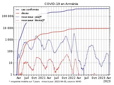 La pandémie de Covid-19 en Arménie démarre officiellement le . À la date du , le bilan est de 8 709 morts.