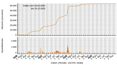 Le premier cas est constaté le 13 mars 2020[2], suivi par le premier décès le 30 mars[3].
