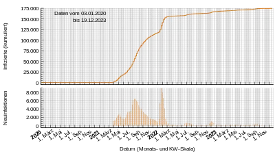 La pandémie de Covid-19 est une crise sanitaire majeure provoquée par une maladie infectieuse émergente apparue fin 2019 en Chine continentale, la maladie à coronavirus 2019, dont l'agent pathogène est le SARS-CoV-2. Ce virus est à l'origine d'une pandémie[note 1], déclarée le par l'Organisation mondiale de la santé.
