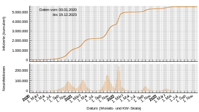 La pandémie de Covid-19 est une crise sanitaire majeure provoquée par une maladie infectieuse émergente apparue fin 2019 en Chine continentale, la maladie à coronavirus 2019, dont l'agent pathogène est le SARS-CoV-2. Ce virus est à l'origine d'une pandémie[note 1], déclarée le par l'Organisation mondiale de la santé.