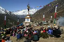Jour de fête et cérémonie bouddhiste à Pangboche. Avril 2006.