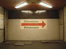 La station a la particularité de disposer d'une pièce refuge en cas de guerre ou de catastrophe naturelle. La pièce est munie d'une cuisine, de toilettes et d'une aération filtrée. 3 339 personnes peuvent y trouver refuge. Même si la pièce est propriété de la BVG, elle a été financée par le ministère fédéral des Finances[3]. Il est possible de visiter le refuge dans les tournées touristiques[4].