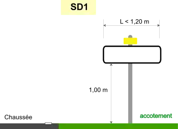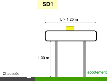 | SD1 | ![]() longueur inférieure ou égale à 2,50 m sur accotement Hauteur au-dessus du sol : 1m L < 1,20 m : un support centré |