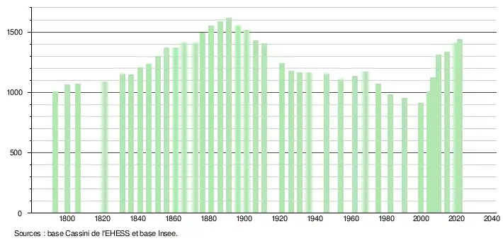 En 2021, la commune comptait 1 439 habitants[Note 5], en augmentation de 7,39 % par rapport à 2015 (Loire-Atlantique : +6,78 %, France hors Mayotte : +1,84 %).