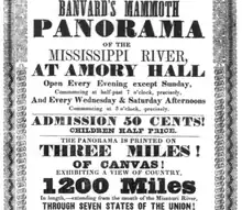 Aux États-Unis, le Panorama du Mississippi de John Banvard, achevé en 1846, montrant le paysage de la rivière sur une bande de 4 570 m sur 3,65 m de haut, considéré comme le plus grand du monde : les rouleaux, stockés dans un hangar de Coldspring Harbour (New York) prirent feu en 1891[25].
