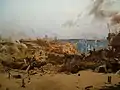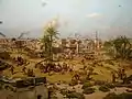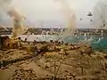 - La Défense de Paris contre les armées allemandes (1872) par Félix Philippoteaux[26] peint en collaboration notamment avec son fils Paul Philippoteaux, exposé de 1872 à 1890 au panorama National des Champs-Élysées[27] (1856, Davioud architecte, actuel théâtre du Rond-point).