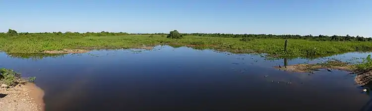 Le Pantanal est une immense plaine alluviale[1] qui se transforme pour une grande partie de l'année[9] en un grand marais d'eau douce, l'une des plus grandes zones humides de ce type[1], précédant en taille, avec ses 170 000 km2, les marécages africains du Sudd le long du Nil (57 000 km2), du delta intérieur du Niger (64 000 km2) et du delta interne de l'Okavango (18 000 km2).