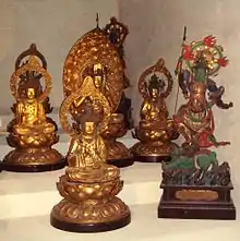 Un groupe de statues célèbre, le mandala situé dans le temple Tō-ji à Kyōto, présente certains des principaux éléments et structures du panthéon bouddhiste. Le mandala a été réalisé au IXe siècle et offert à Kūkai[8]. Émile Guimet en apporta une copie à Paris, en France, à la fin du XIXe siècle, copie qui se trouve maintenant au musée Guimet[8].