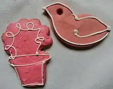 On trouve d'autres variantes avec une pâte semblable au pain d'épice. Le colorant rose est alors intégré à la pâte avec des oranges confites[2].