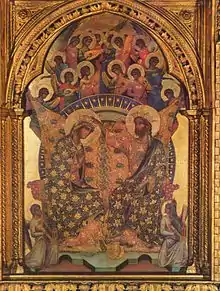 - Polyptyque : Couronnement de la Vierge au paradis, entourée d'anges musiciens, 1350.