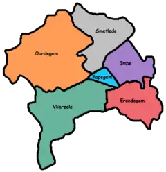 | Papegem et ses sections frontières | Localisation de Papegem dans Lede |