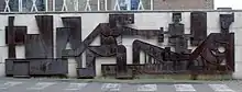 Au-dessus de l'ancienne porte de l'usine se trouve un relief en grès qui a été appliqué pour le 100e anniversaire en 1950. Il représente une femme allongée tenant une banderole. Cheminées d'usine fumantes et le pont Sint Servaas en arrière-plan. Le bas-relief a été réalisé par Wim van Hoorn et porte le texte : "1850 Door arbeid tot welvaart 1950" (Du travail à la prospérité)[8]. Dans une cage d'escalier du département "développement et technologie" sont suspendus deux collages de verre qui dépeignent la production de papier de manière traditionnelle et moderne (Frans Slijpen, 1959)[9]. Dans le restaurant du personnel, il y a un relief en bronze avec le même sujet (Hank Beelenkamp, 1986)[10]. Un grand relief en acier Corten à l'entrée de l'usine représente le même thème.