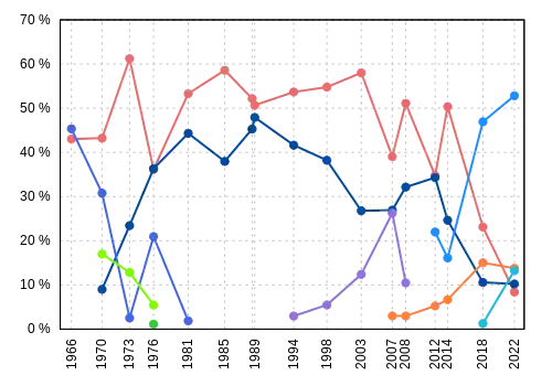 | Le taux de participation lors de l'élection était de 63,6 % et 455 bulletins ont été rejetés. | |||||