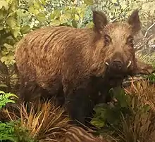 En Toscane, le sanglier vit principalement dans des forêts de chênes, non loin des sources d'eau, mais aussi dans le maquis méditerranéen. Le sanglier toscan (Sus scrofa majori) est généralement plus petit que ses congénères, mais présente un crâne plus long et plus large. Il peut atteindre 1,80 m de long, 1 m au garrot et 150 kg[2].