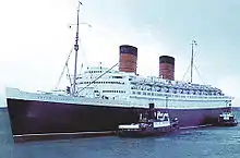 Les États-Unis sont pour leur part fortement impressionnés par les états de service des deux Queen durant la guerre. Désirant un navire fiable et rapide en cas de guerre contre l'URSS, ils font construire en 1952 le United States, qui bat tous les records de vitesse établis et détient depuis lors le Ruban bleu[65]. L'Italie construit peu après le prestigieux Andrea Doria qui fait naufrage en 1956[66].