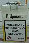 Dans de nombreux pays, les paquets de cigarettes comportent un avertissement sanitaire d'information sur les risques du tabac. La taille, le contenu et la langue dépendent du pays dans lequel ils sont vendus[2],[3],[4],[5],[6]. Les paquets peuvent comporter des messages écrits ou des photographies à caractère choquant. Ces avertissements sont en principe le fait d'une obligation légale dans le cadre d'une politique de santé publique.