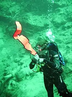 En plongée dérivante, ou lorsque la houle est importante, un parachute de palier permet d'indiquer au navire où sont les plongeurs.