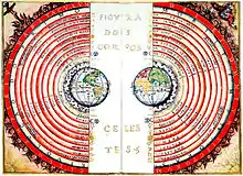 Après s'être élevée à travers la sphère de feu censée exister dans la haute atmosphère terrestre (Canto I), Béatrice guide Dante à travers les neuf sphères célestes du Ciel, jusqu'à l'Empyrée, qui est la demeure de Dieu. Les neuf sphères sont concentriques, comme dans le modèle géocentrique standard de la cosmologie médiévale, dérivé de Ptolémée[2]. L'Empyrée est non-matérielle. Comme pour son Purgatoire, la structure du Ciel de Dante est donc de la forme 9+1=10, l'une des dix régions étant de nature différente des neuf autres.