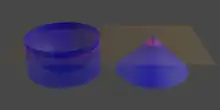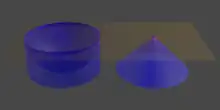 - est le « bol », c'est un cylindre de rayon 1 et de hauteur 1, auquel on a soustrait une demi-sphère de rayon 1, concentrique à la face supérieure.