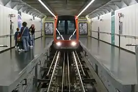 Elle est en correspondance avec le terminus bas du funiculaire de Montjuïc.