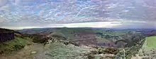 Scout Moor est un haut marais de tourbière et de bruyère dans les Pennines du Sud[2], atteignant une altitude de 473 m à son sommet, Top of Leach[4],[5]. La géologie du sous-sol, mélange de roches dures et de schistes tendres, possède de basses couches de houille. La roche et les schistes s'érodent à des rythmes différents, ce qui donne à la zone un paysage rempli d'escarpements abrupts séparés par des reliefs en pente, même si le sommet principal de la lande est plat et arrondi[5]. La lande couvre une superficie d'environ 1 347 acres (545 ha)[6], dont moins de 21 acres (8,5 ha), environ 2 %, sont occupés par le parc éolien.